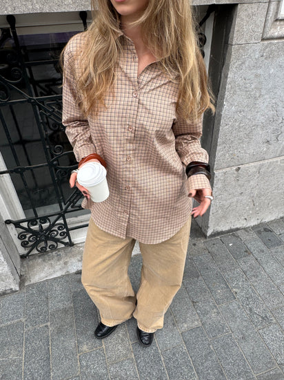 Een klassiek oversized shirt in een zachte beige tint. Het item heeft een losse, relaxed pasvorm en is gemaakt van een lichte, soepele stof die comfortabel aanvoelt. Draag het open over een top of dichtgeknoopt voor een tijdloze, effortless look. Het model is 1.74 m en draagt normaal maat S/M.